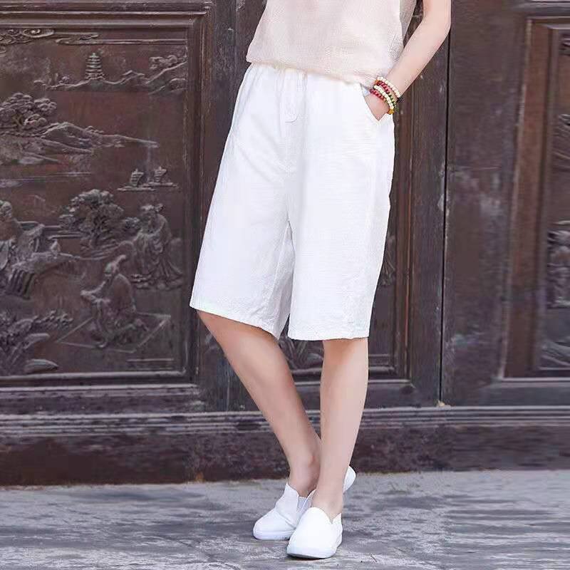กางเกงขาสั้นลำลอง แบบเอวสูง ผ้าคอตตอนลินิน สำหรับผู้หญิง